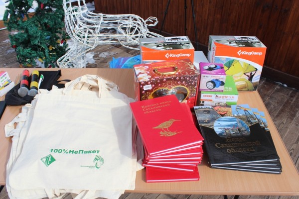 Всем командам вручили дипломы, грамоты и подарки: экосумку, Красную книгу Сахалинской области, книгу «Недра Сахалина», наборы туристической посуды.