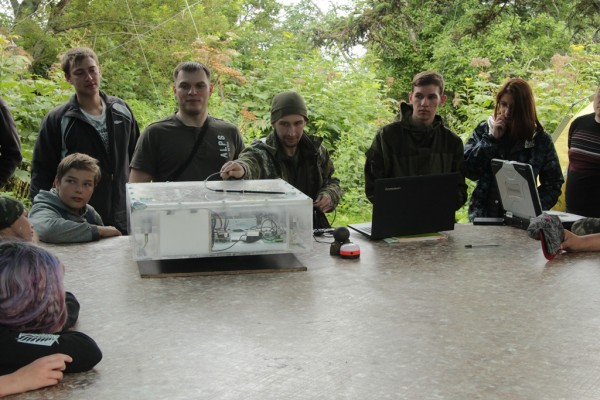 В завершающие дни на лесную поляну приезжали еще две большие делегации. Для знакомства и обмена опытом в сфере экообразования гостями лагеря стали сотрудники ботанического сада г. Южно-Сахалинска и группа учёных-биологов из штата Вашингтон, США. А команда студентов из Нижегородского государственного технического университета им. Алексеева, проходившая практику в СКБ САМИ, продемонстрировала ребятам свой опытный робототехнический комплекс для исследования прибрежной зоны и оценки волнового климата.