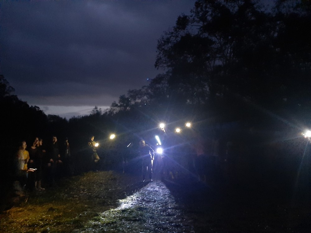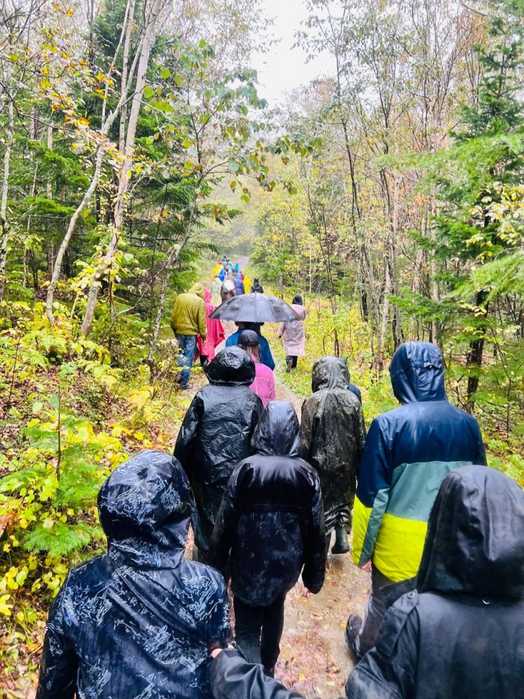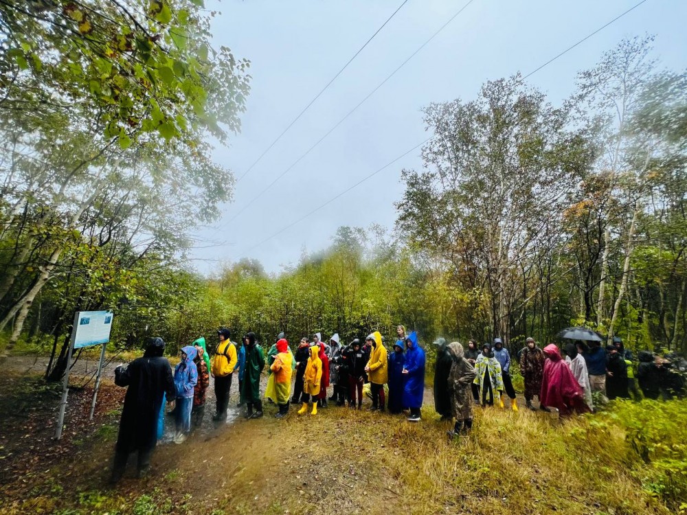 Погода приготовила испытания дождем, поэтому в программу пришлось внести изменения. В первый день прошли экологической тропой до подножия останца «Лягушка», а вечером встретились на большом круге, чтобы поделиться впечатлениями от путешествия, поиграть в любимые игры и спеть песни.