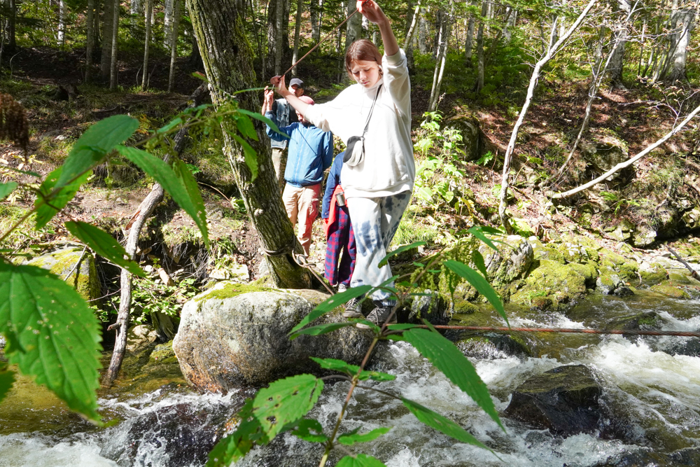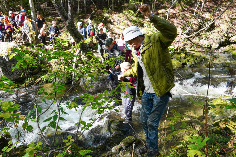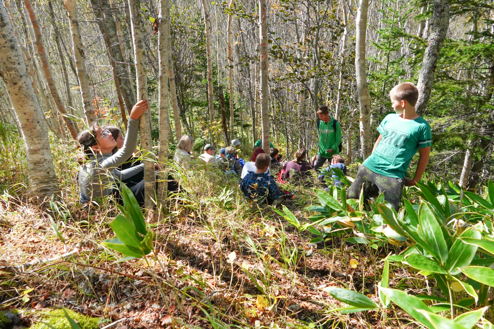 Второй день подарил ясную погоду и возможность подняться на гору Горбунова. Преодолев препятствия в виде переправы над рекой и крутого подъема, ребята оказались на вершине, с которой открывался чудесный вид на оз.Тунайча и Анивский залив.
