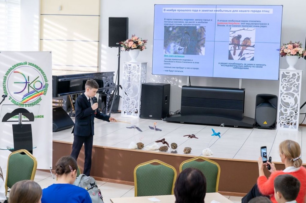 А затем началась основная часть – доклады о проведенных исследованиях природы, экопроектах. Прозвучало 13 выступлений, в том числе об оценке состояния воды в р. Корсаковка, кочевках птиц в Южно-Сахалинске, о проблеме жестокого отношения к домашним животным в Шахтерске, выращиванию микрозелени и др. Полный список здесь.