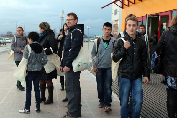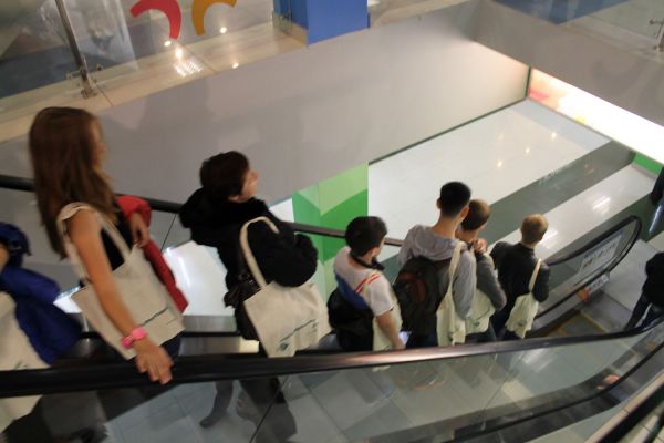 Уже на крыльце флешмоб перерос в акцию по раздаче экосумок прохожим. Ребята предлагали посетителям совершать покупки с тканевыми сумками, всего было роздано 150 сумок. Следующая акция по раздаче экосумок планируется в ноябре рядом с крупным супермаркетом г. Южно-Сахалинска.